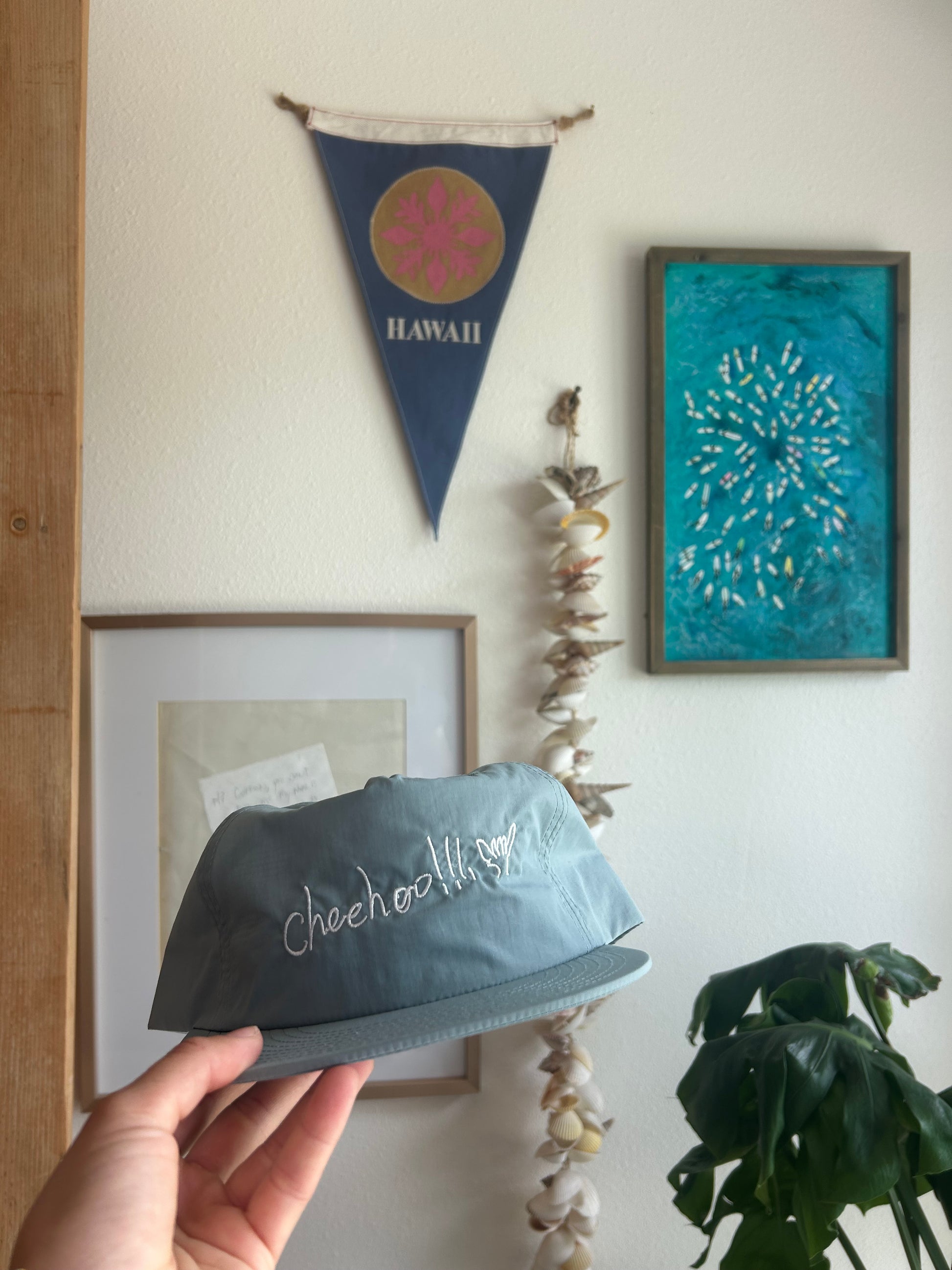 Cheehoo is an expression of excitement, celebration, and encouragement that you'll commonly hear used in the Polynesian culture and surf community. The embroidered "cheehoo!!!" is Curren's handwriting from his Bible.